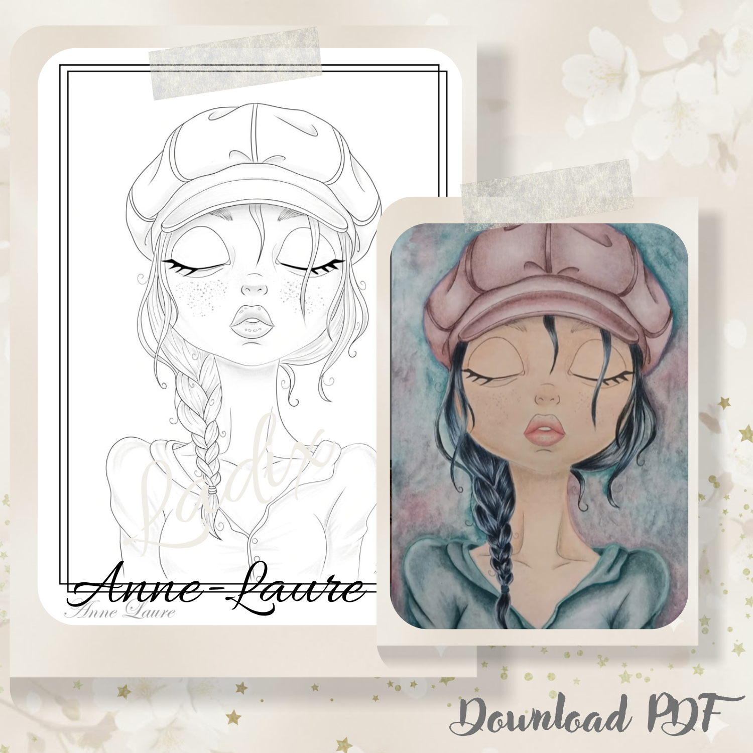 Every line has been drawn like a caress, every detail sculpted to reveal Anne-Laure’s soul — subtle, confident, free. Colored pencils, markers, watercolor… choose the shades that speak to your heart and transform this illustration into a mirror of your own sensitivity. The result of a process blending poetry, intention, and refined technology.